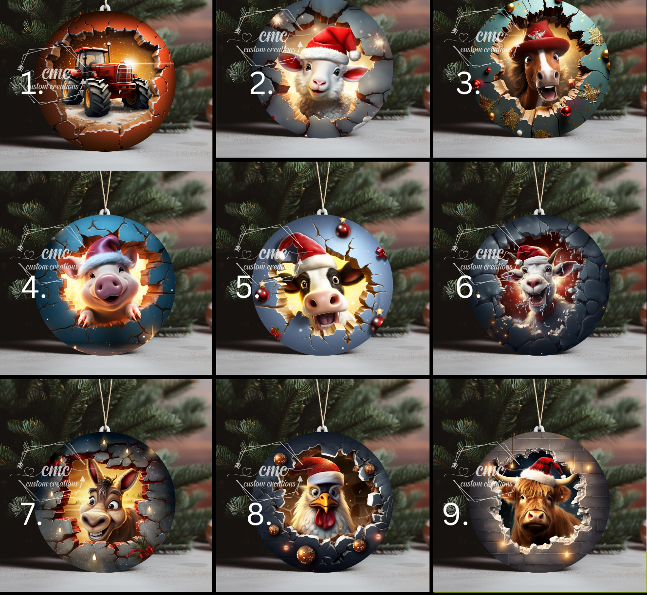 "Faux 3D" Breakthrough Farm Christmas Ornament