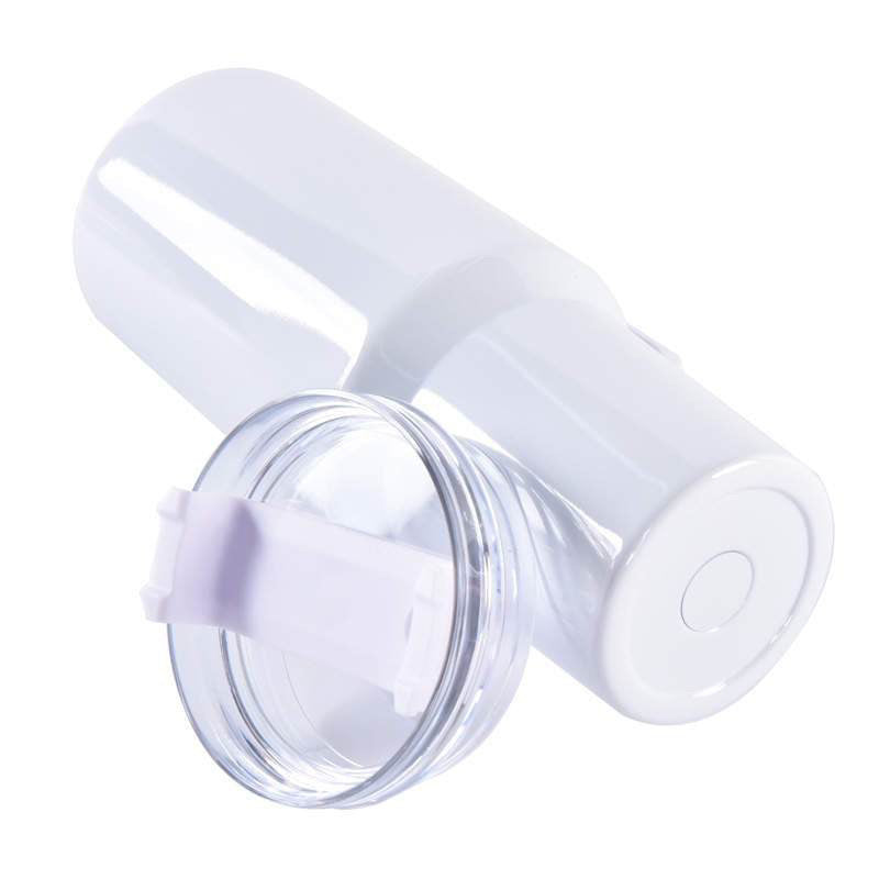 🎀 THE TUMBLER. Stainless-steel with a white finish; holds 40oz. liquid volume; total size is approximately 10.4” tall with a 2.8” diameter at the bottom and 3.8” diameter at the top; this ensures that it will fit nicely in most cupholders. rust-resistant; not recommended for use with acidic liquids.