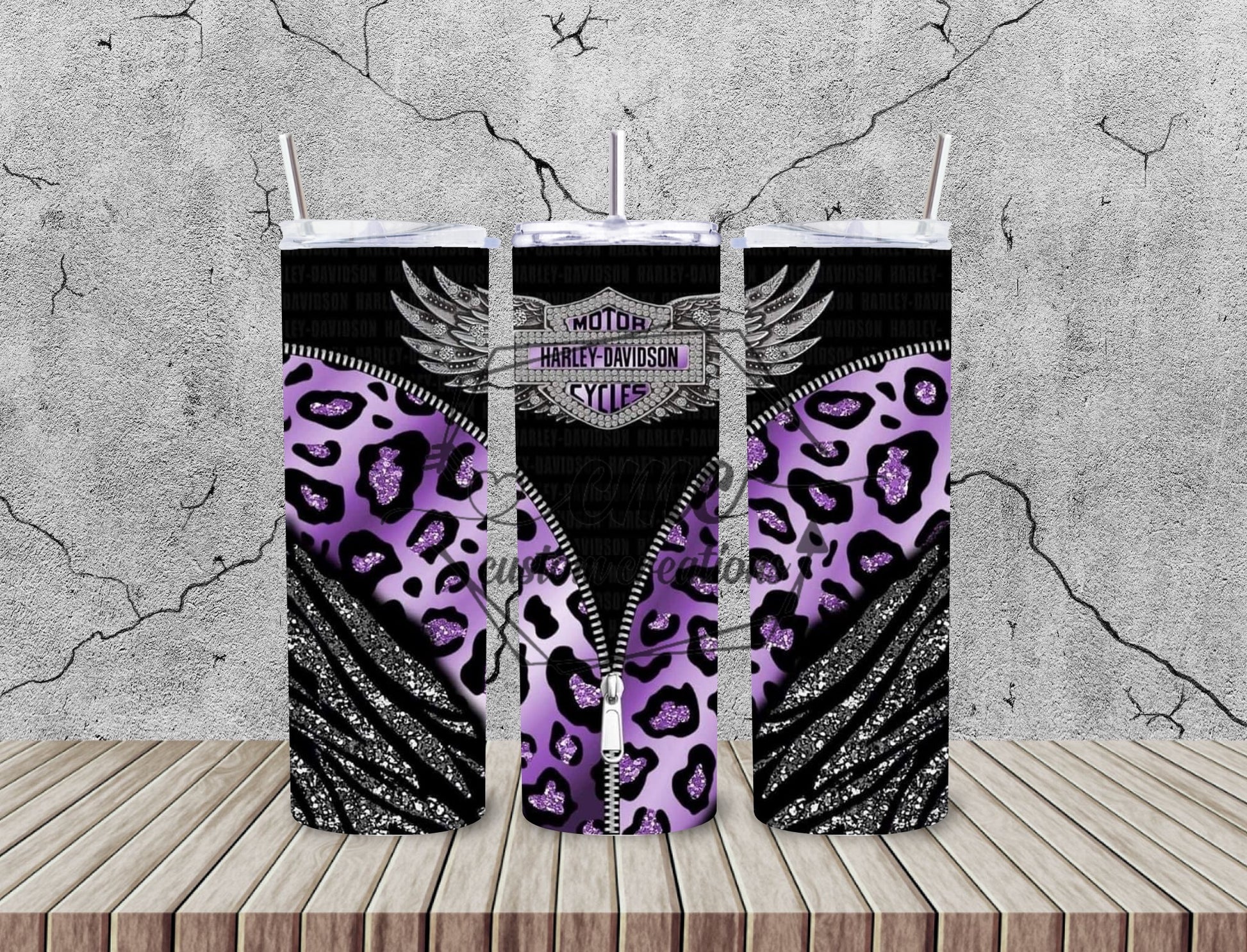Purple Leopard Motorcycle 20 Oz Stainless Skinny Tumbler