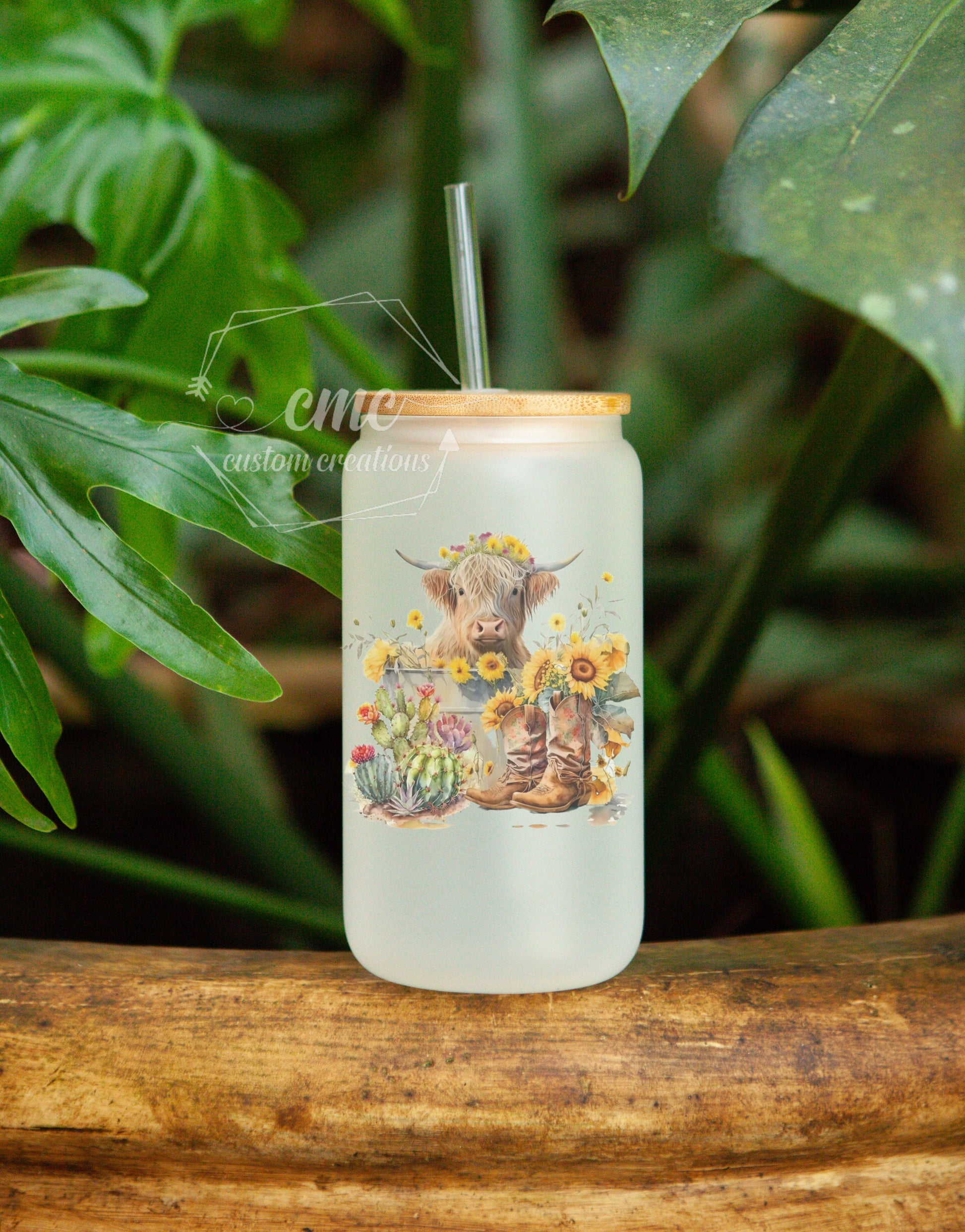 🎀 THE MUG. Frosted Glass; holds 16 oz. liquid volume; Comes with a bamboo lid and straw.