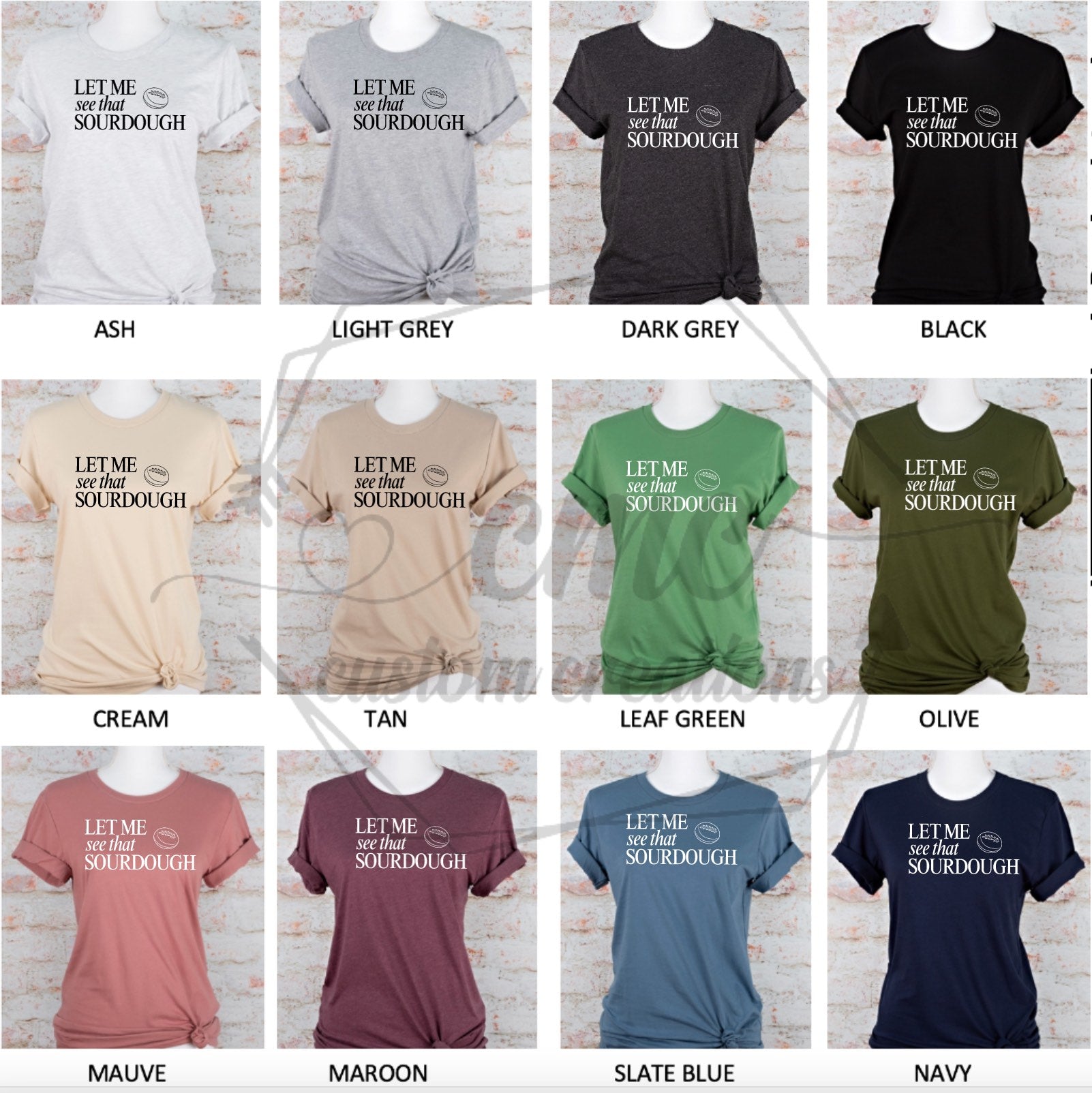 Introducing our one of a kind sourdough graphic t-shirt line! Made with the finest cotton from the renowned Bella + Canvas brand, this lightweight tee is perfect for all sourdough lovers out there. With its unique graphic design, you'll surely turn heads and ignite conversations about your baking passion. Whether you're an experienced baker or just starting your sourdough journey, this comfy T-shirt is a must-have addition to your wardrobe. Embrace your love for sourdough and wear it proudly!